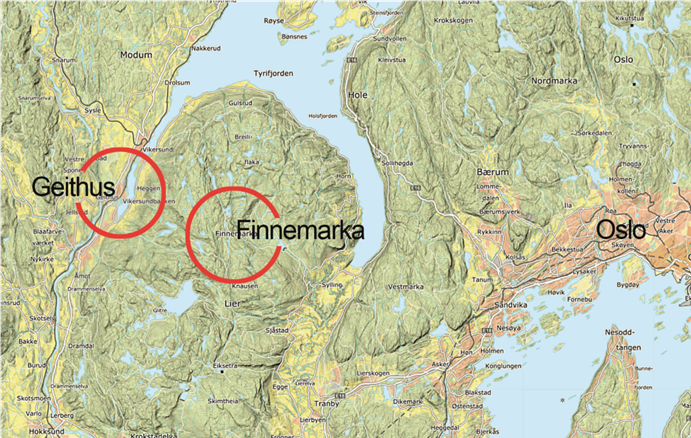 Finnemarka nord for Drammen fikk navnet etter den finske innvandringen rundt 1650. Dette er det vestligste området i Norge hvor finnene etablerte seg med svedjebruk som karakteristisk jordbruk. Etter ca. 200 år var det nesten ingen skogfinner igjen i området. De hadde enten flyttet videre eller var integrert i lokalsamfunnet. Min farmor Agnes Sofie Hansdatter Gjøslien, f. 8. feb 1896, ble født på en husmannsplass i Finnemarka. Da hun skulle ut i arbeid, bosatte hun seg på Geithus, et tettsted som vokste fram ved slutten av 1800-tallet. Dette ble mitt feriested og en viktig del av min barndom.